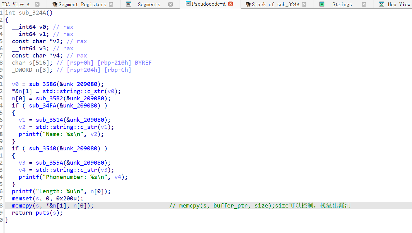 本题真正的入口不是main,而是ParseFromArray,只有 Parse 成功 才会进入 sub_324A(),如果不能构造“合法 protobuf”,就永远进不了漏洞函数